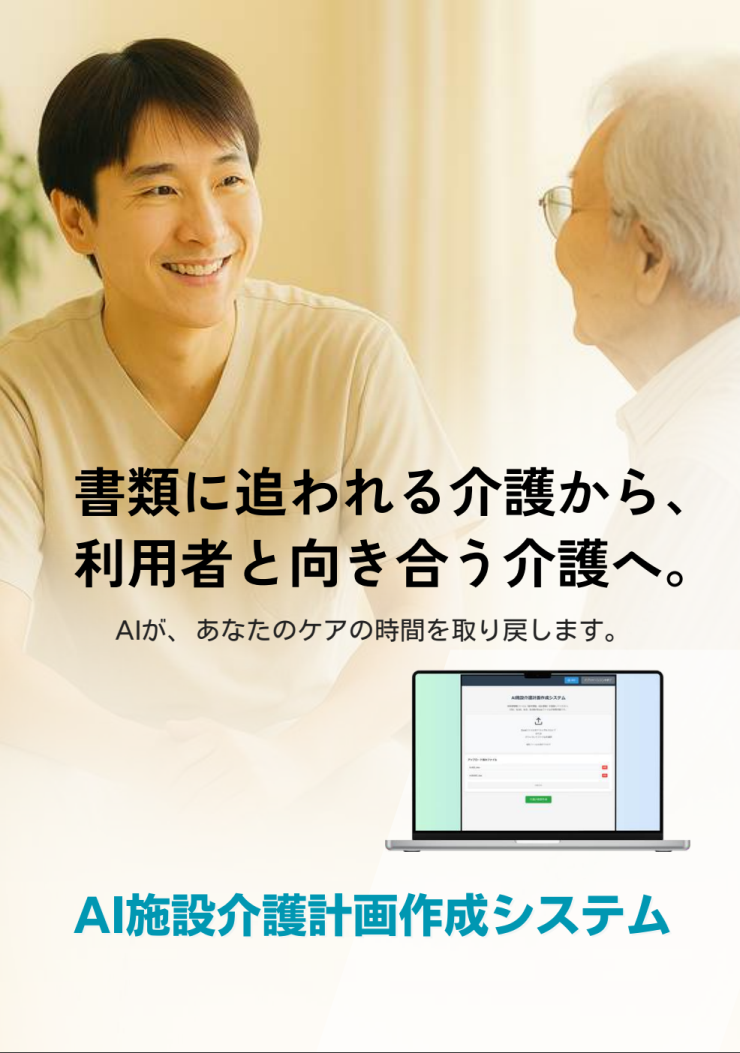 AI施設介護計画作成システムの特長や操作の流れについて、約8分の動画でわかりやすく解説しています。